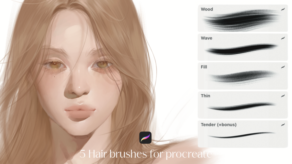 HAEYOON natural hair brush set (4) + bonus brush & guide for procreate